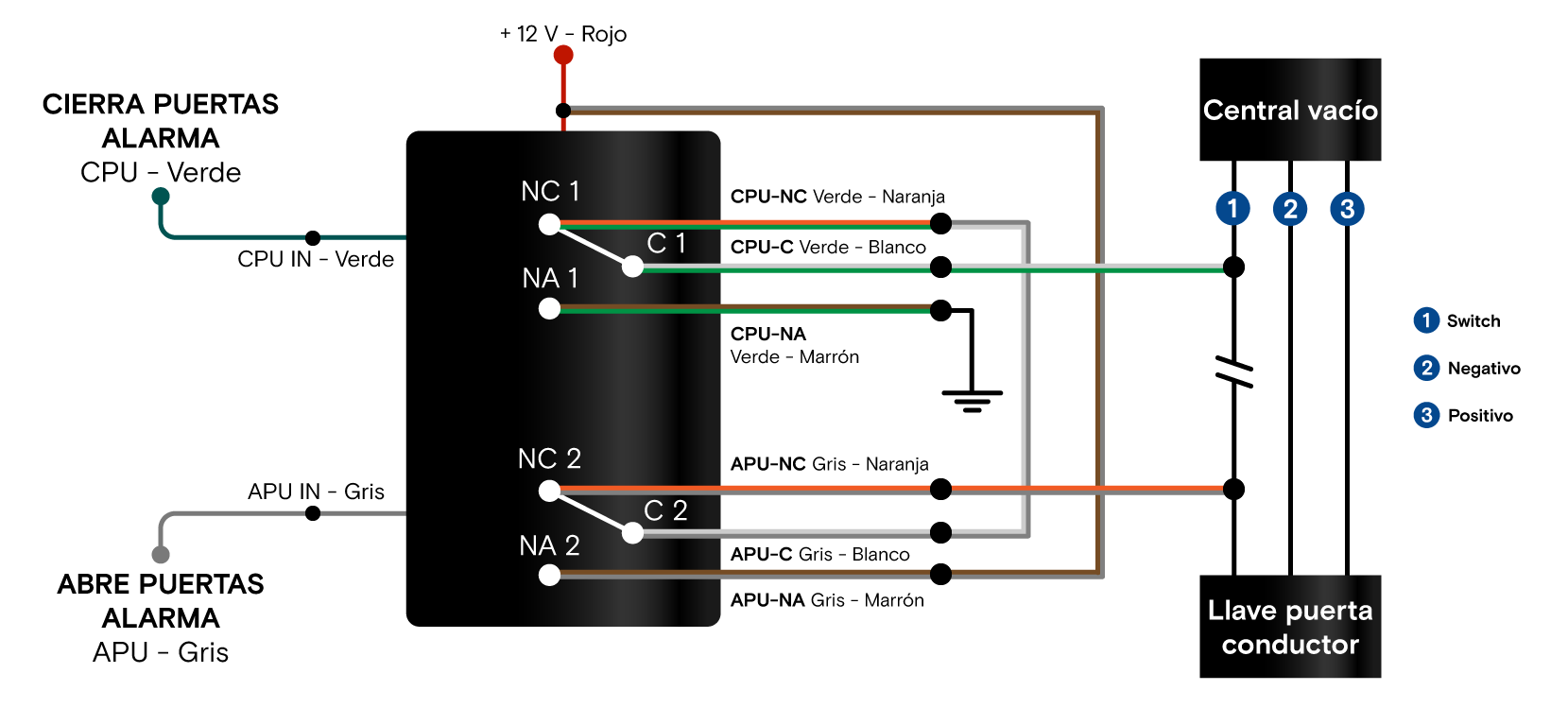 En caso de no contar con la información respecto de qué tipo de sistema de cierre centralizado utiliza el vehículo, es imprescindible determinarlo antes de conectarlo a la central de alarma. Para esto es necesario utilizar un multímetro y realizar las mediciones en la llave de comando del abre-cierra puertas.