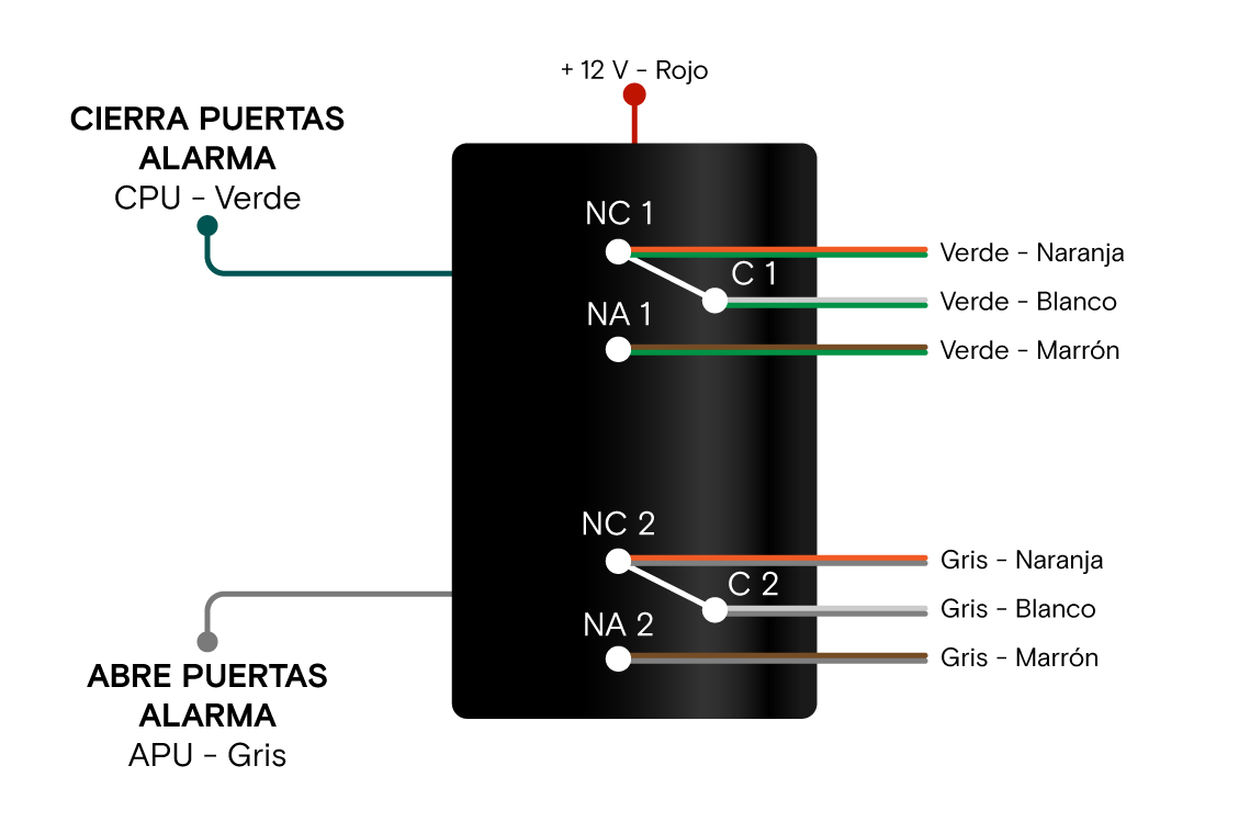 El módulo integra dos relés inversores con contactos fácilmente accesibles a través de un bornera. Además, cuenta con un precableado que simplifica su instalación.