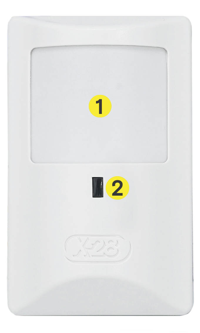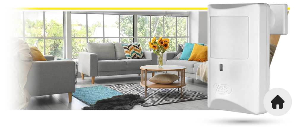 Detector de movimiento infrarrojo convencional, con procesador digital de señales, compensación térmica inteligente y contador de pulsos programable.