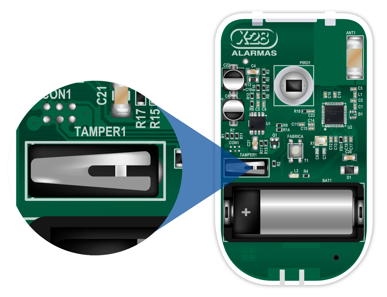 El MD W Ultra está equipado con un switch de tamper que funciona como un mecanismo antisabotaje. Si la tapa del equipo se abre, incluso cuando la central está desactivada, el sensor generará un evento de sabotaje y disparará el sistema de alarma para alertar sobre la situación.