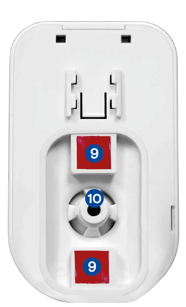 Abrí el gabinete haciendo presión en la traba inferior de la base, con la mano o con un destornillador plano, para liberar la tapa del sensor.