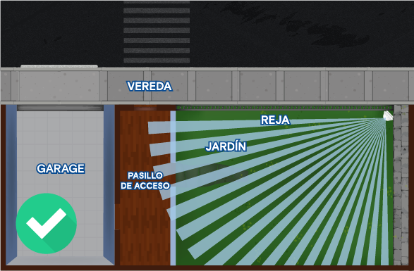 - 3En patios traseros o terrazas, verificá que los haces no crucen hacia propiedades vecinas.