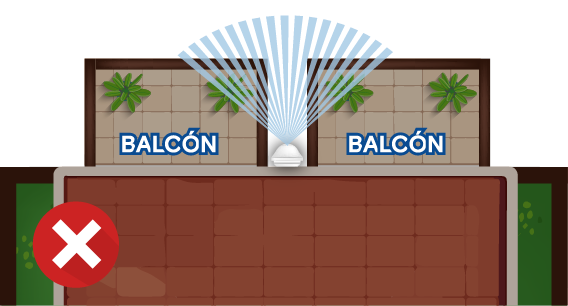 - 4Usalo para proteger patios, terrazas o zonas donde un intruso deba desplazarse. Evitá emplearlo para proteger espacios aéreos que puedan ser cruzados por saltos o caídas.