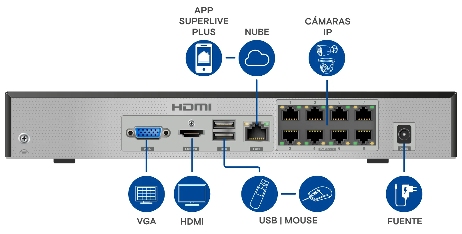 | Video - Canales | 8 canales PoE |