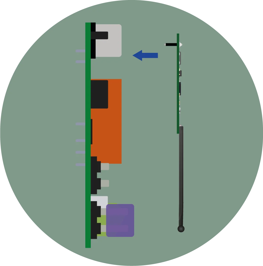 El receptor inalámbrico MPI BEEPR RC-MPXH se monta directamente en la placa de la central, mediante el zócalo de conexión CON-R35.